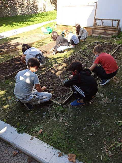 Los alumnos de quinto de Educación Primaria han estado limpiando los bancales, aireando la tierra...